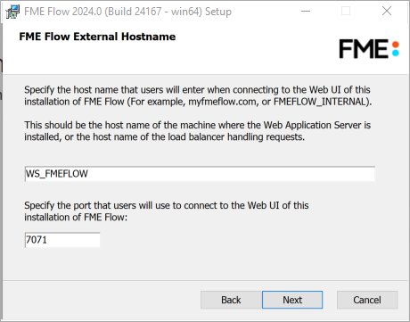 Specify the Web Application Server hostname through which users will connect to FME Flow.