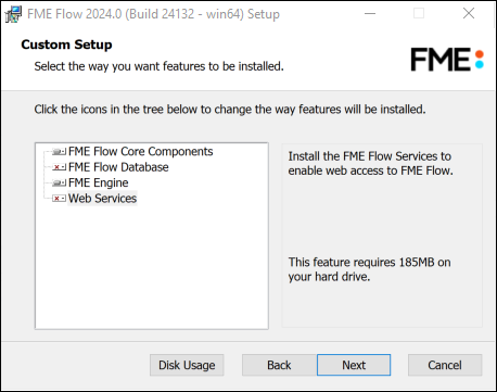 Select FME Flow Core Components and FME Engine. Do not select FME Flow Web Services.